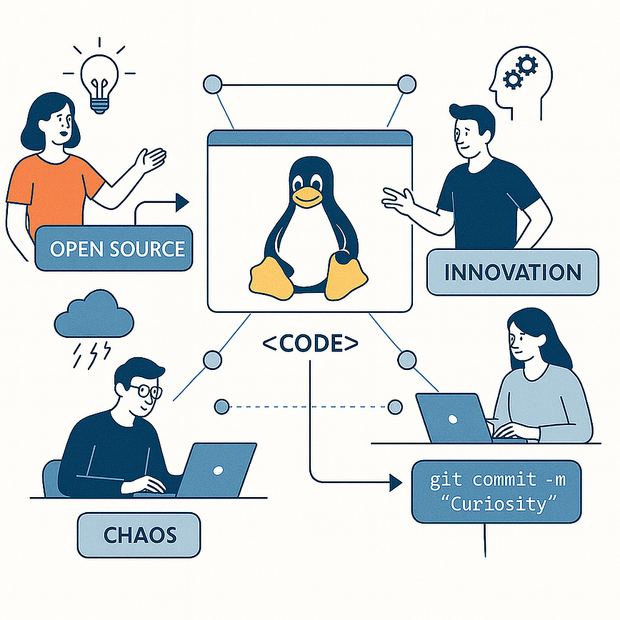 Am întâlnit odată un dezvoltator la un hackathon care a construit o aplicație de tip „iubit bazat pe inteligență artificială” sub forma unei meme. Doi ani mai târziu, același concept a devenit baza unui startup real, finanțat, perfecționat și redenumit. Acesta este tiparul open source: haos → curiozitate → creație. Începi să-ți bați joc de ceva, apoi construiești din greșeală ceva care funcționează.